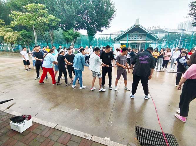 哨聲響起,比賽一觸即發(fā)!大家團(tuán)結(jié)一致努力拼搏著!有的緊握麻繩,咬牙使勁;有的扎穩(wěn)腳步,不可撼動(dòng);有的身體向下傾斜,鉚勁拉繩……大家的勁往一處兒使,心往一處兒聚。全神貫注的眼神、奮力拉扯的身影,無(wú)不彰顯了員工們的意志。